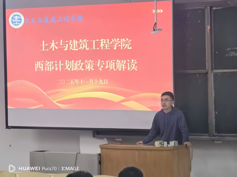 为引导青年学子将个人理想融入国家发展大局,鼓励 2026 届毕业生投身西部建设、在基层一线锤炼成长,11 月 19 日,土木与建筑工程学院开展西部计划专题讲座。本次讲座邀请 2 位参与西部计划的优秀校友线上分享实践经验,学院团委辅导员刘慧亮主持讲座,现场秩序井然、互动氛围浓厚。