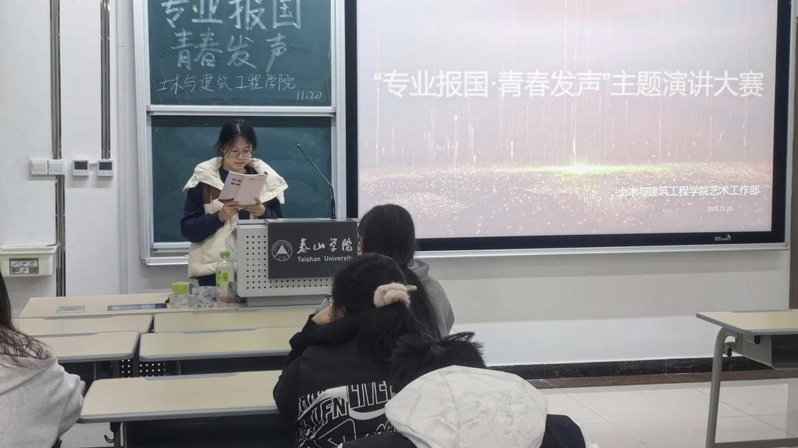 为深入落实学院“新时代,做学习新思想的优秀大学生”成长培养计划,引导同学们树立思想新风尚,11月20日,土木与建筑工程学院于新生二部综合楼C1014举办“专业报国·青春发声”主题演讲活动。