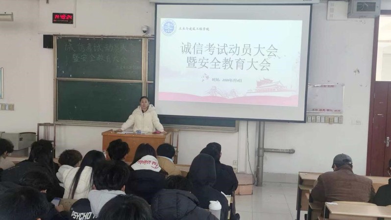 为进一步夯实考风考纪建设根基,强化学生安全防范意识,营造文明诚信、平安和谐的校园氛围,1月4日到5日,我院采取线上线下相结合的形式,分别于校本部和新生二部召开诚信考试动员大会暨安全教育大会。学院党委副书记、全体辅导员、学生干部以及新生二部全体学生参加会议。