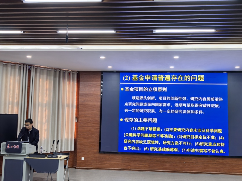 会上,郑俊杰教授作了题为《国家自然科学基金项目申请书撰写的一点体会》的报告,他结合自身深厚的学术积淀和丰富的基金评审经验,从宏观政策到微观撰写,对基金申请进行了系统剖析。首先深入解读了国家自然科学基金的近期申报导向、评审原则与注意事项。然后,郑教授聚焦于申报书撰写的核心环节,针对如何确立具有新颖性与创新性的选题、如何精准拟定项目名称、如何写好摘要与立项依据、如何设定研究目标与规划技术路线,以及如何凝练关键科学问题与创新点等,分享了大量实用技巧与独到见解。指导会还设置了案例剖析与“一对一”辅导环节,郑教授对多位教师提交的申报书初稿进行了现场点评,就其中存在的共性问题和个性化不足提出了极具针对性的修改意见。