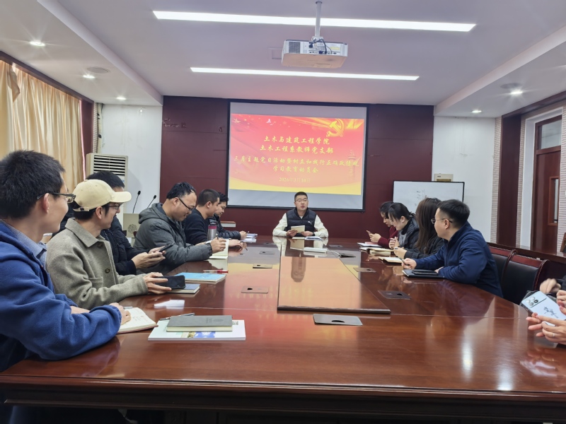 为深入学习贯彻习近平新时代中国特色社会主义思想,认真落实上级党组织关于树立和践行正确政绩观学习教育的工作部署,切实引导全体党员教师牢记初心使命、砥砺担当作为,近日,土木工程系教师党支部召开树立和践行正确政绩观学习教育动员部署会。会议由党支部书记凌天龙主持,党支部全体党员参加会议。