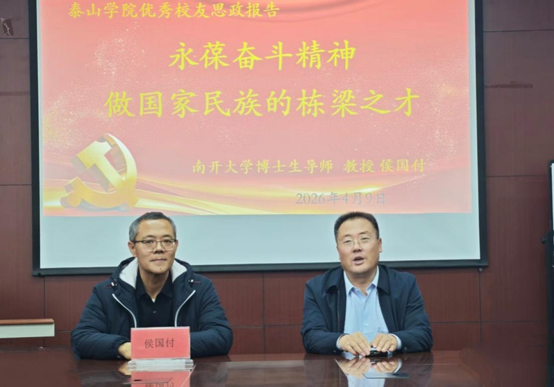 报告中,侯国付教授结合自身从泰山学院求学、到深耕科研领域的成长历程,以亲身经历为鲜活教材,深情回顾了奋斗路上的艰辛与收获,深刻阐释了“奋斗是青春最亮丽的底色”的时代内涵。他勉励同学们要树立远大理想,锚定人生目标,在专业学习中锤炼过硬本领,在攻坚克难中磨砺意志品质,以永不懈怠的奋斗姿态,成长为可堪大用、能担重任的栋梁之材,为国家科技进步与行业发展贡献青春力量。
